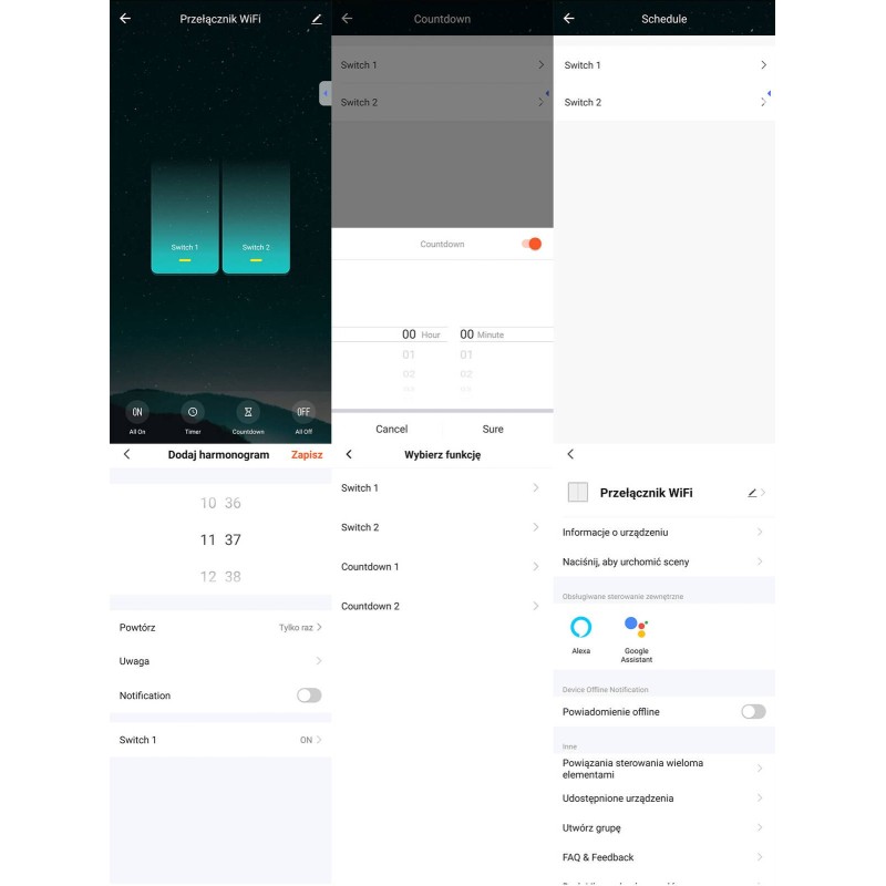 Laiks — iestatiet ieplānotos/atpakaļskaitīšanas laikus, lai ieslēgtu/izslēgtu oteiktā laikā