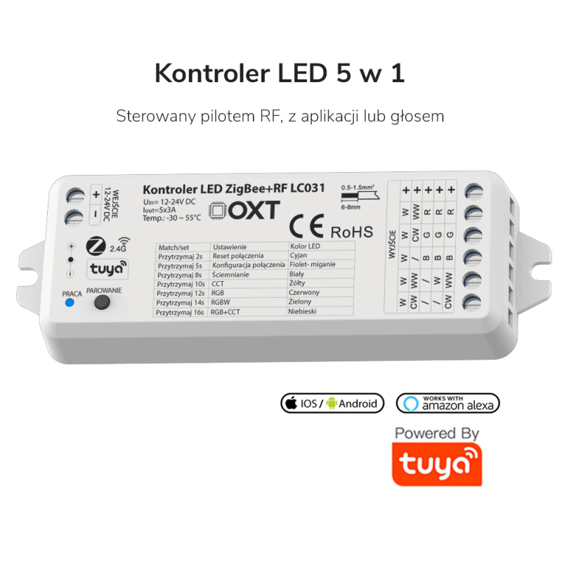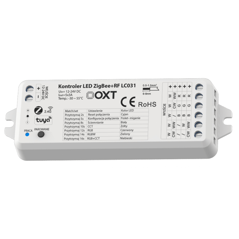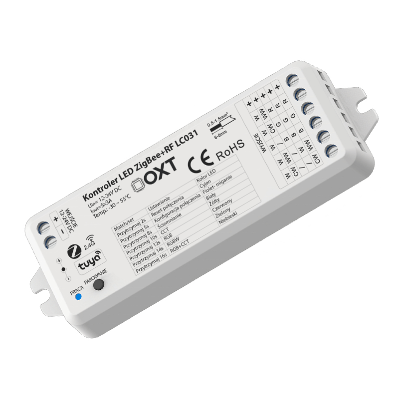 OXT sērijas kontrolleris ir vismodernākais produkts LED apgaismojuma pārvaldīšanai. Izmantojiet piecu veidu RGBW+CCT lentes jebkurā veidā, automātiski vai attālināti. Instalēšana aizņem dažas minūtes, un papildu opciju izmantošana ir ārkārtīgi vienkārša.