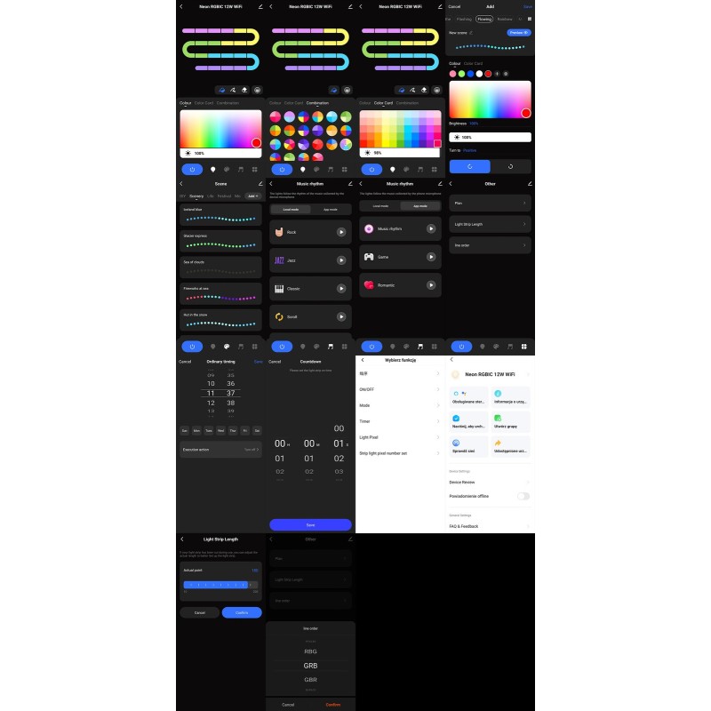 16 miljoni RGBIC krāsu, sižeta režīmi, apgaismojuma regulēšana uz mūzika