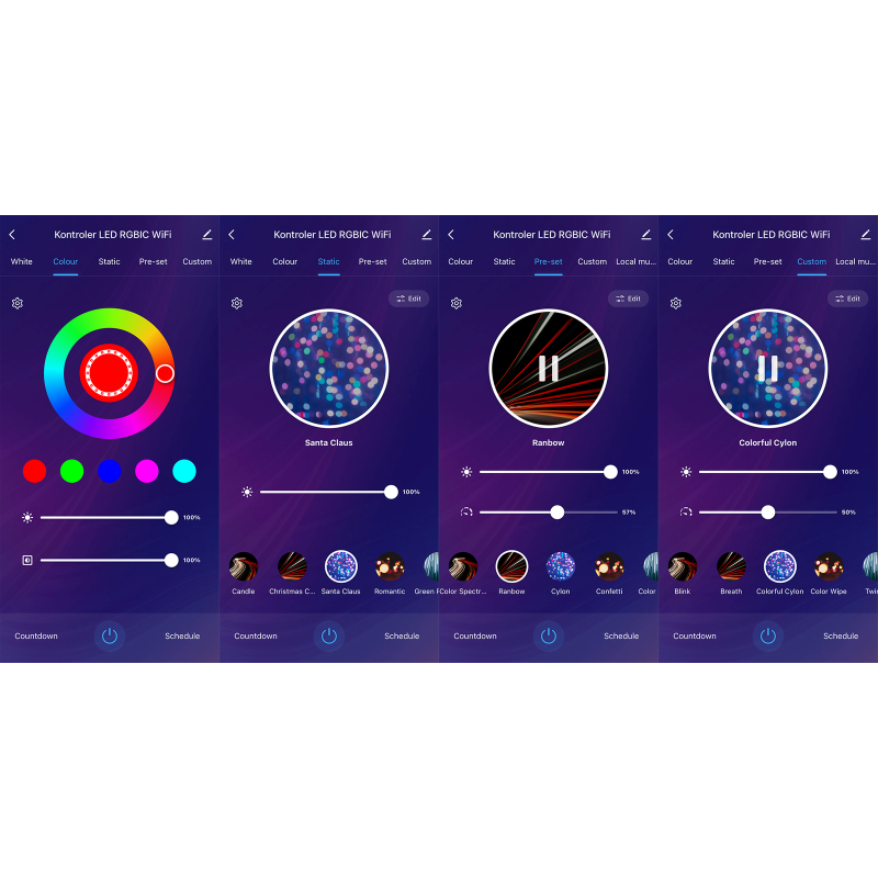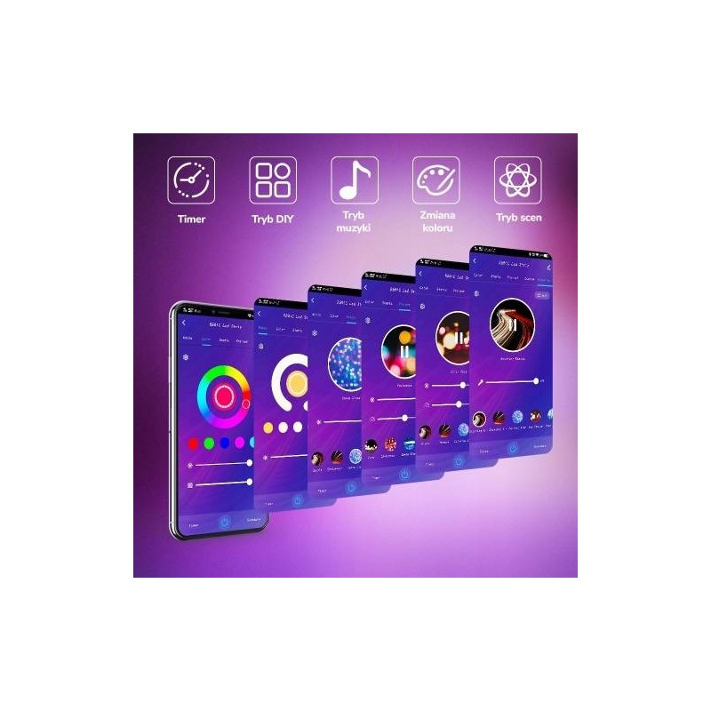 RGBIC LED sloksnes ir digitālas RGB sloksnes, kurās katru diodi var vadīt eatkarīgi, kas ļauj sasniegt daudzus apgaismojuma efektus, piem. plūstošs vai klejojošs punkts. Lietojumprogrammā ir pieejami 12 apgaismojuma režīmi, pateicoties kuriem jūs varat pielāgot kaseti savam oskaņojumam vai telpai.