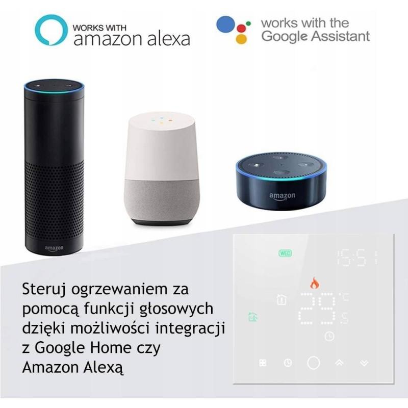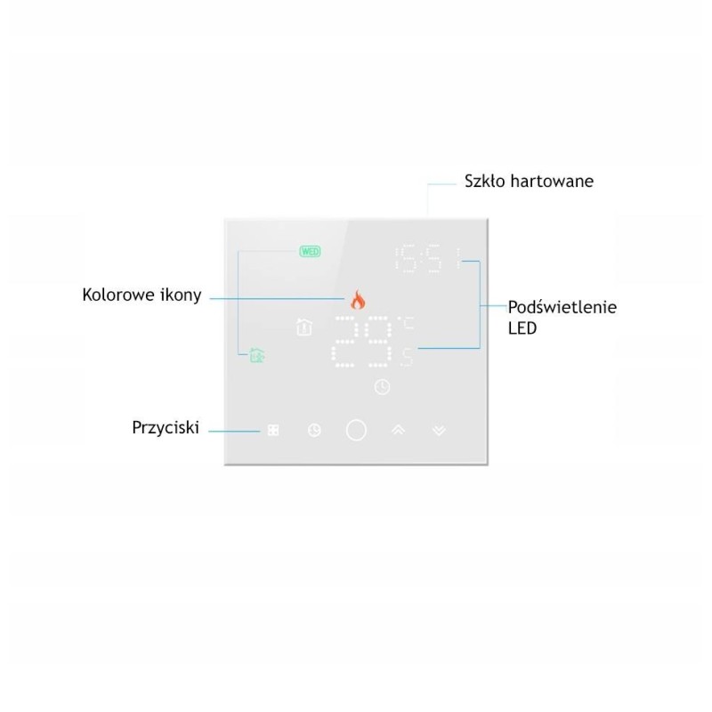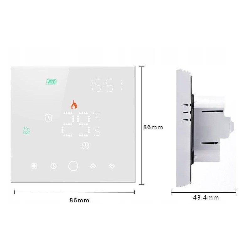 Estētisks, uzkrītošs displejs, piedāvātajam digitālajam termostatam ir elegants un mūsdienīgs dizains. Visām tās funkcijām var viegli piekļūt un kontrolēt, izmantojot intuitīvo lietotāja interfeisu o lietojumprogrammas vai paneļa skārienpogām. Pateicoties tā modernajam dizainam, tas lieliski iederēsies jebkuras mājas vai biroja interjerā.