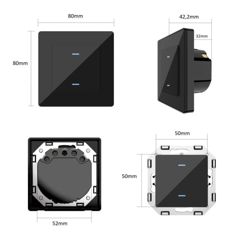 PSMART Switch 2 ķēdes stikls RM C ZigBee TUYA