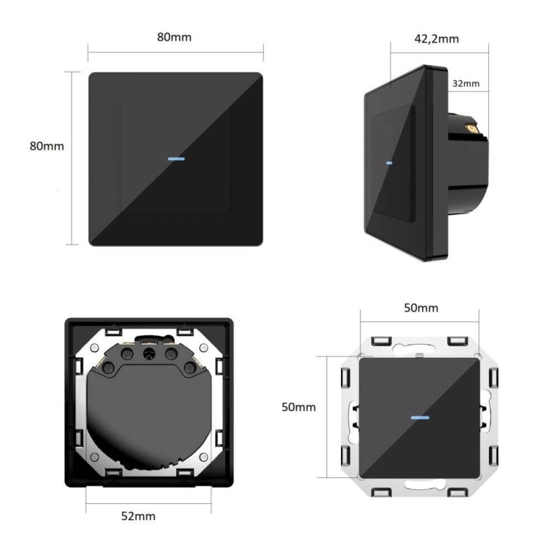 PSMART Touch switch 1 ķēde, melns, stikls ZigBee TUYA