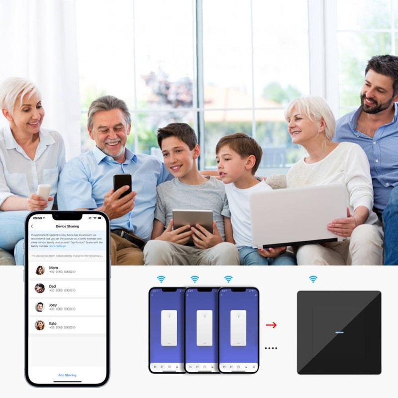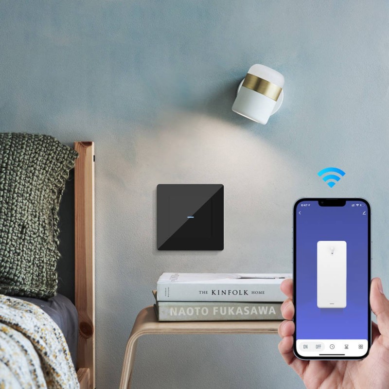 Inteliģentais sienas slēdzis ir modulārs slēdzis, kas ļauj lietotājiem attālināti ieslēgt/izslēgt pievienoto apgaismojumu. ķēde o jebkuras vietas pasaulē: izmantojot lietojumprogrammu TUYA o jebkuras vietas (Tuya viedā dzīve)