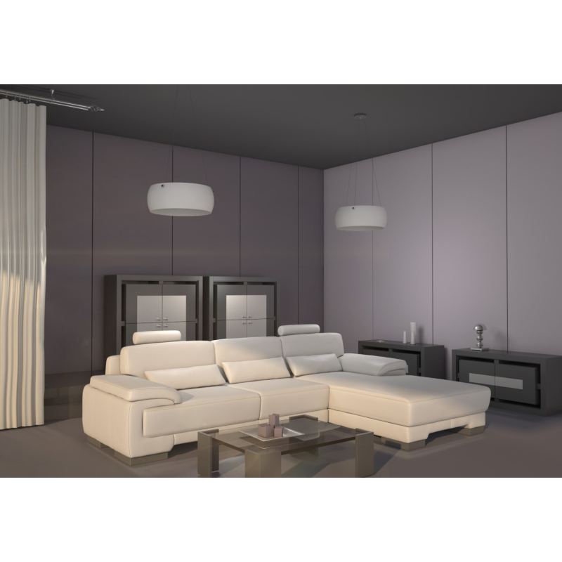 The OPTICO SMART pendant light in matte white color resembles a glass puzzle, creating an illusion of light rays.