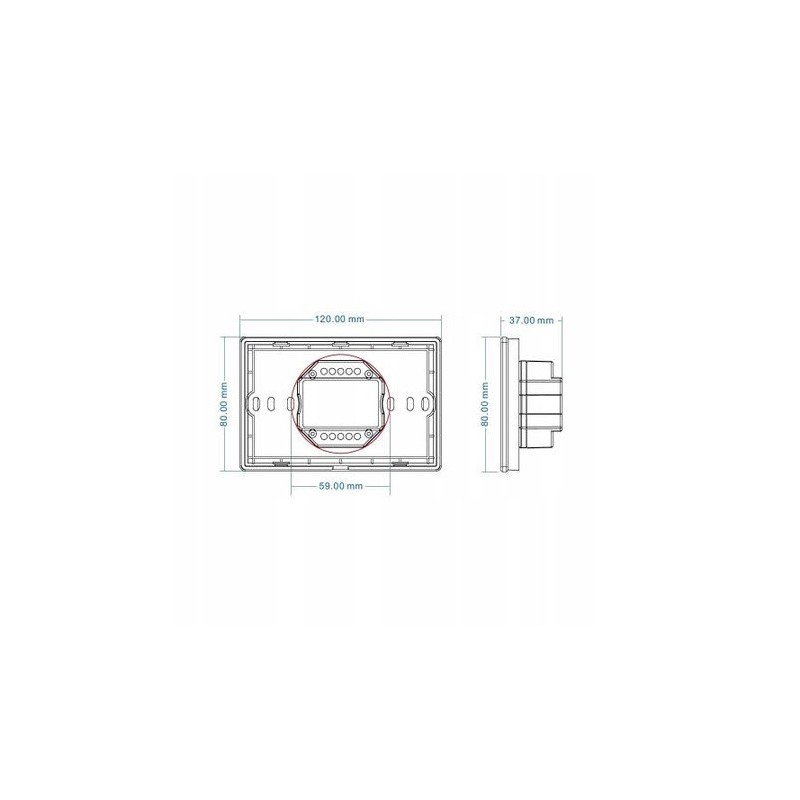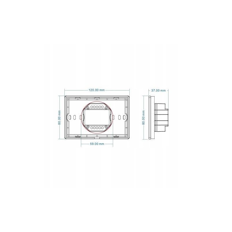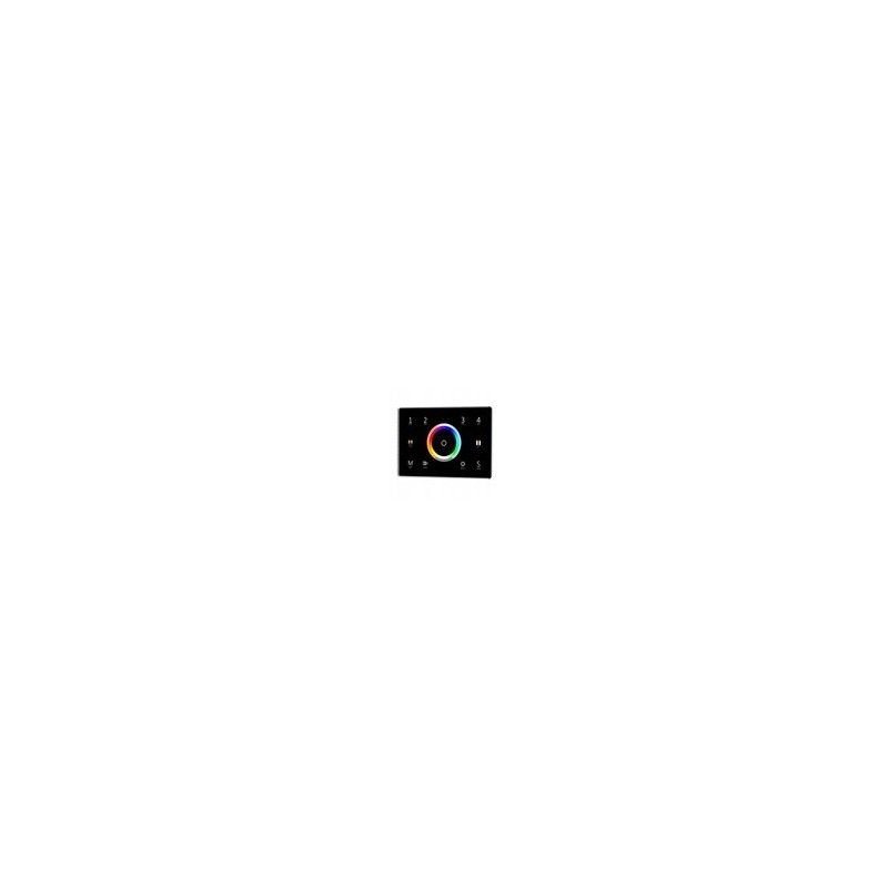Panel for controlling 4 LED zones in a room with the possibility of configuring color temperature, colors (RGB, RGBW, RGB + CCT), brightness and scenes, due to its aesthetics it will perfectly fit into any interior! It has a blue diode illuminating the panel at night, when pressed, the red diode lights up temporarily.