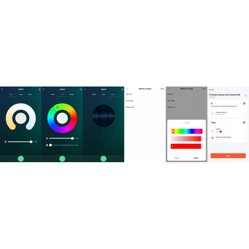 Just connect the equipment to the ZigBee gateway. The bulb can be controlled via the app from anywhere in the world. Change the brightness level, saturation hue and color using your smartphone.
