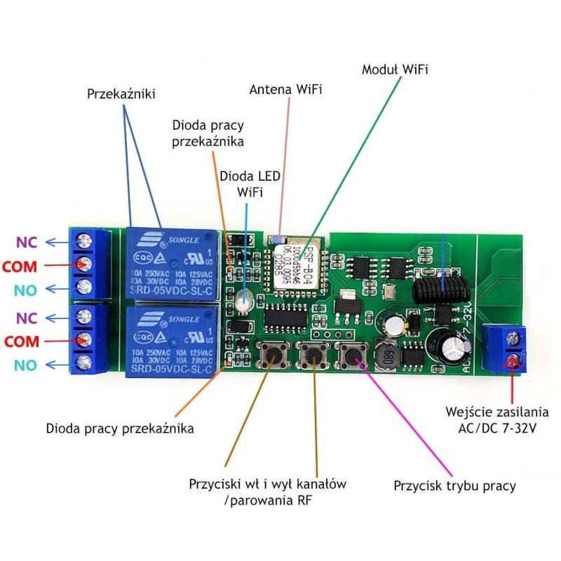 SONOFF 2CH DC 5-32V WIFI+RF VOLTAGE FREE HOUSING
