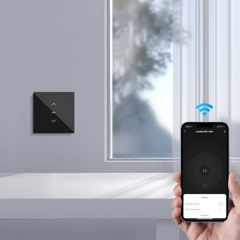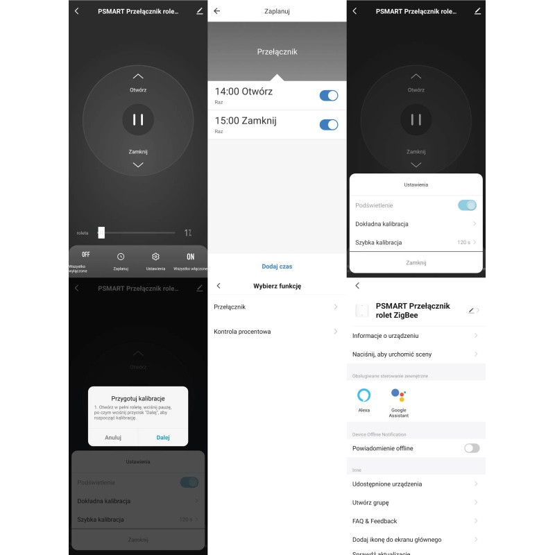 - Accurate calibration (follow the information provided on the application screen) - Quick calibration (possibility specifying the roller shutter opening time in seconds) Set up automation in the application to automatically open and close the roller shutters according to sunrise and sunset