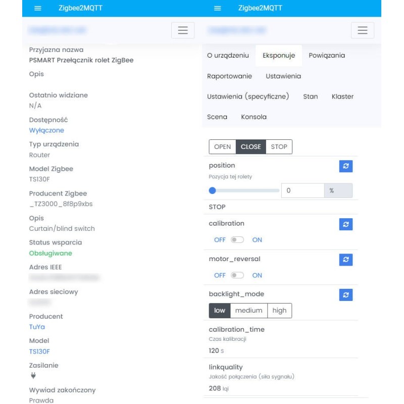 The device is compatible with Home Assistant ZigBee2mqtt! Below are screenshots from the HA application.