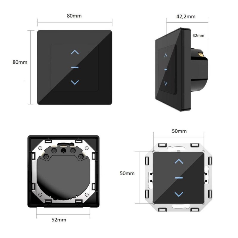 PSMART Touch switch for roller blinds, black, glass, ZigBee TUYA