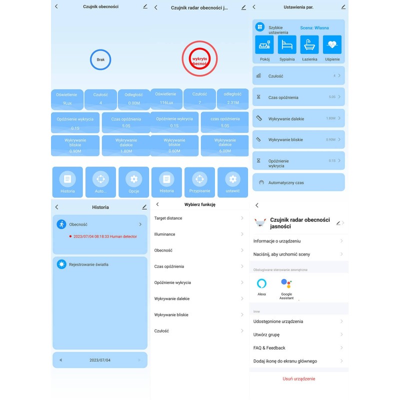 The waves penetrate materials such as glass, plastic or plasterboard, thanks to which the sensor will detect, for example, a person in the shower cabin and will ot turn off the light in the bathroom. Additionally, the sensor has a light sensor that can be used for automation, e.g. to turn on the lighting in a room when the sensor detects an object and the light intensity in the room is below the set level. Build your own smart home
