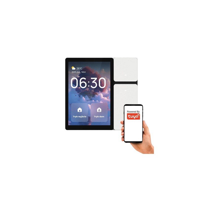 The panel has a 3.5-inch touch display and configurable physical buttons, to which you can assign individual options and thus personalize the device to your needs. In addition to remote control of smart devices, the device will also be an excellent security for your home. In the event of activation of e.g. a smoke, motion or flood sensor, the panel will trigger an alarm and notify the user about the event. Additionally, after pairing the panel with a video intercom, it is possible to conduct video calls with people waiting to enter.