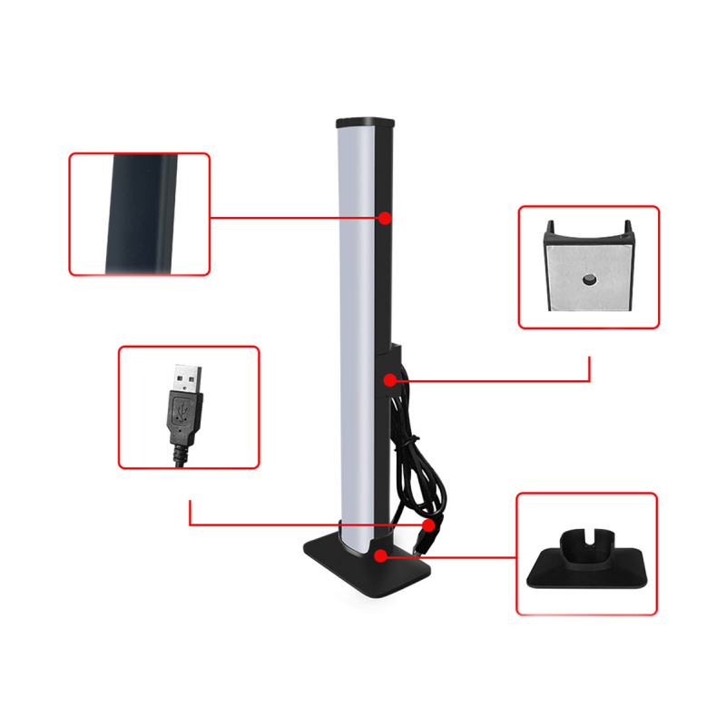 Полоску можно крепить стоя (подставка в комплекте) или подвешивать (на ленту или колесо экк).