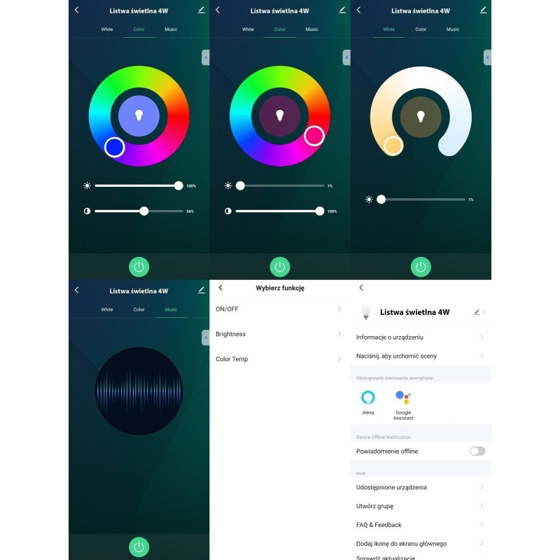 Возможность регулировки яркости, цвета (16 миллионов цветов) и управления цветом белого света (2000–6500 К)