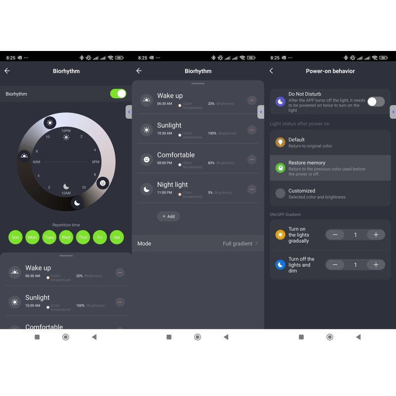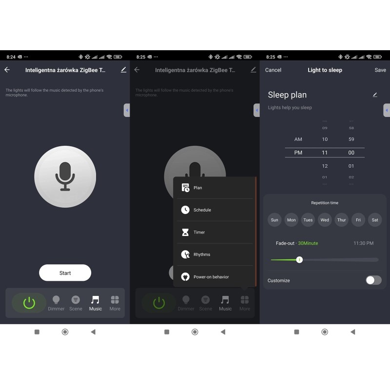 Лампа имеет очень обширное программное обеспечение, которое позволяет, среди прочего, устанавливать состояние (включено, выключено или мы запомним последнее состояние) после отключения питания. Дополнительно можно установить утренний, ночной, комфортный режим и многое другое. Все видно на скриншотах, включенных в предложение.