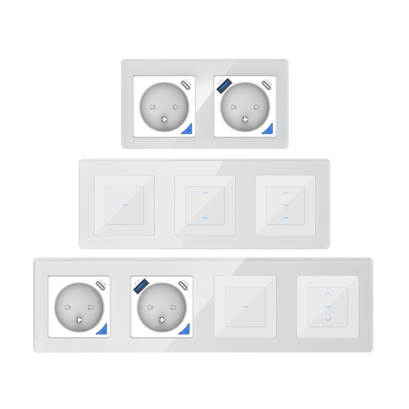Возможность комбинирования с другими выключателями, розетками и контроллерами роллет из этой серии с помощью специальных рамок (доступны в нашем предложении)