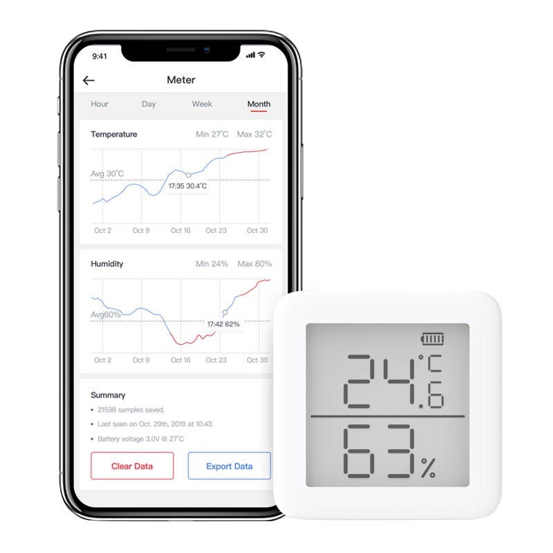 Добавьте свое устройство в приложение и получите удобный доступ к истории измерений (истории за последние 5 недель или безлимитному облачному хранилищу, если вы используете панель управления). Продукт подключается к вашему телефону через Bluetooth и имеет радиус действия до 120 м. Вы также можете экспортировать данные в файлы CSV. Вы также будете получать специальные уведомления. Например, если температура в комнате вашего ребенка опустится ниже определенного уровня, вы сразу об этом узнаете! Примечание. Для использования этих функций требуется панель управления SwitchBot Hub Mini.