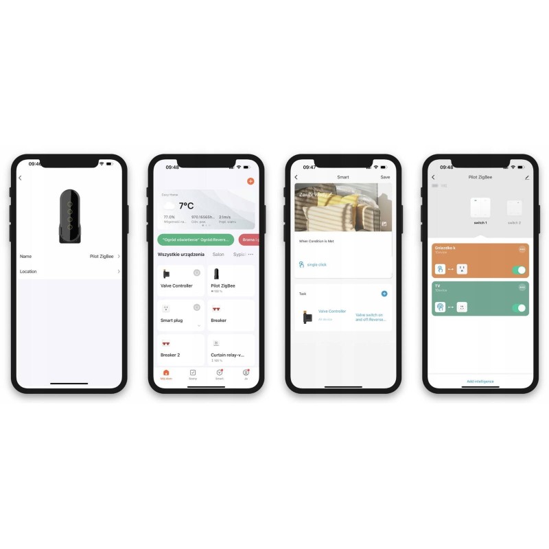 Пульт ДУ позволяет вызывать сцены, которые ранее были настроены в приложении TUYA. Мы можем управлять всеми устройствами в приложении по заранее заданным сценариям. Пульт дистанционного управления позволяет настроить до 12 правил (по 3 правила на кнопку).